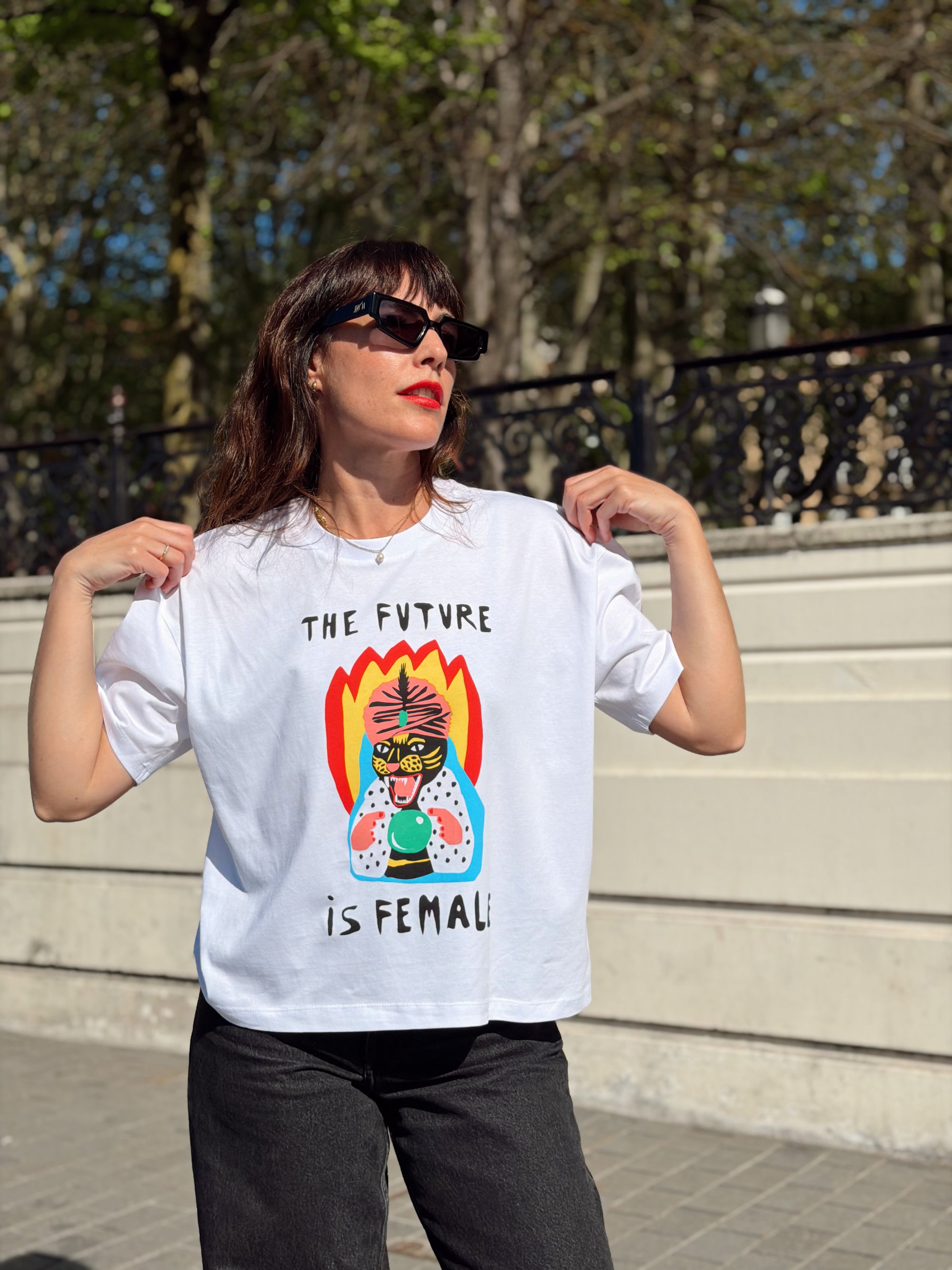 Camiseta blanca 100% algodón orgánico con serigrafía en el pecho.