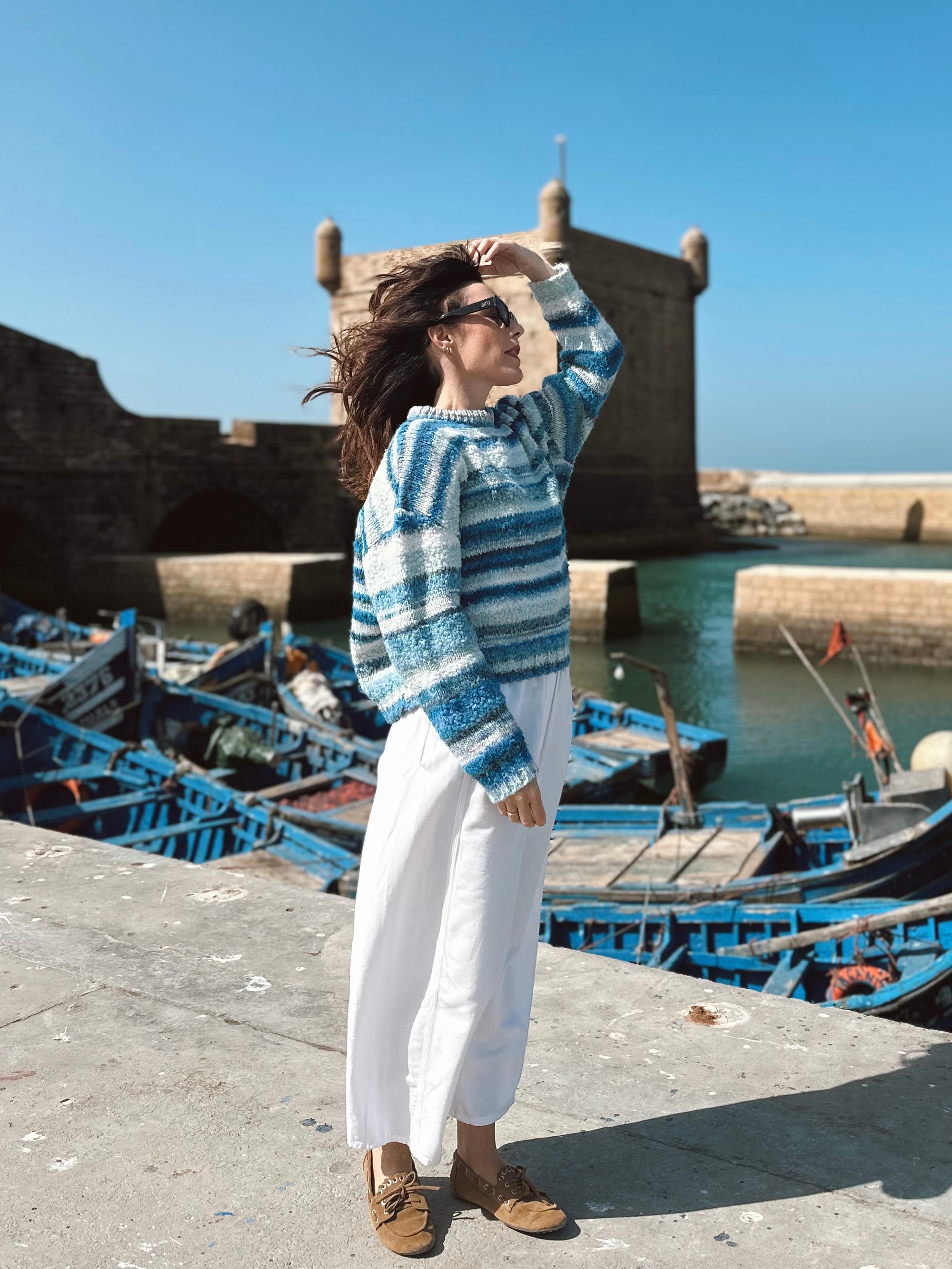Todos los jerséis son diferentes, el propio hilo va creando el dibujo y el cambio de tono o textura según se va tejiendo