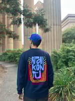 Sudadera azul marino unisex con serigrafia en el pecho y espalda